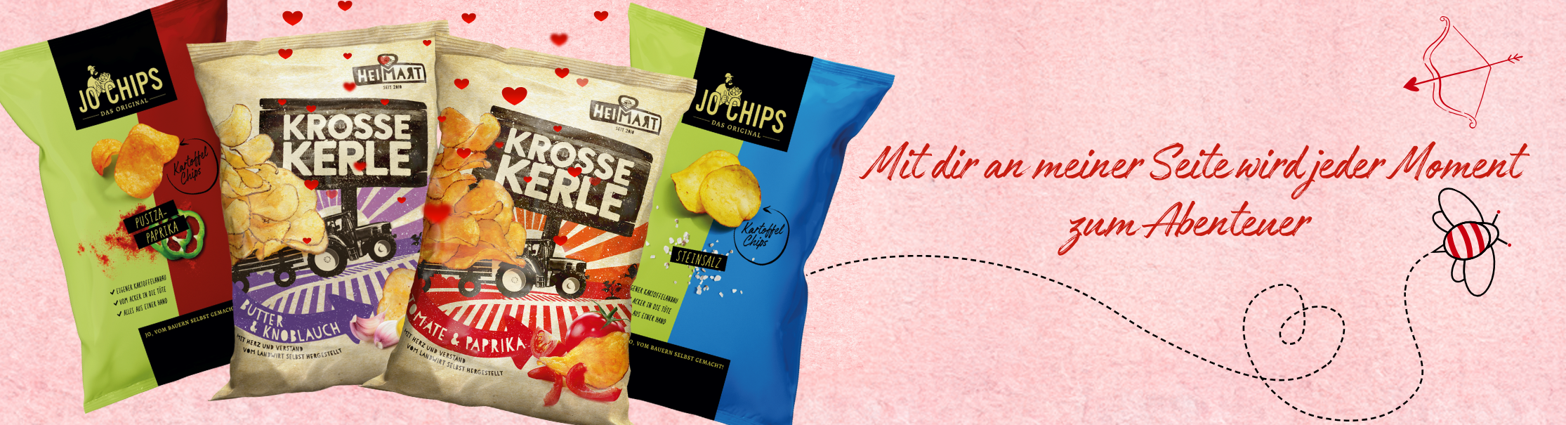 Unser zweite Komponente – Jo Chips! Vom Feld in die Tüte – mit Herz und Verstand: Was für unsere Krossen Kerle gilt, gilt auch für unsere Jo Chips.